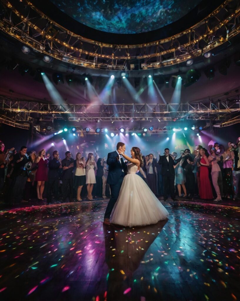 Creamos ambientes mágicos y románticos para tu boda. Nuestro equipo se encarga de la música y la iluminación para que vivas un día inolvidable.